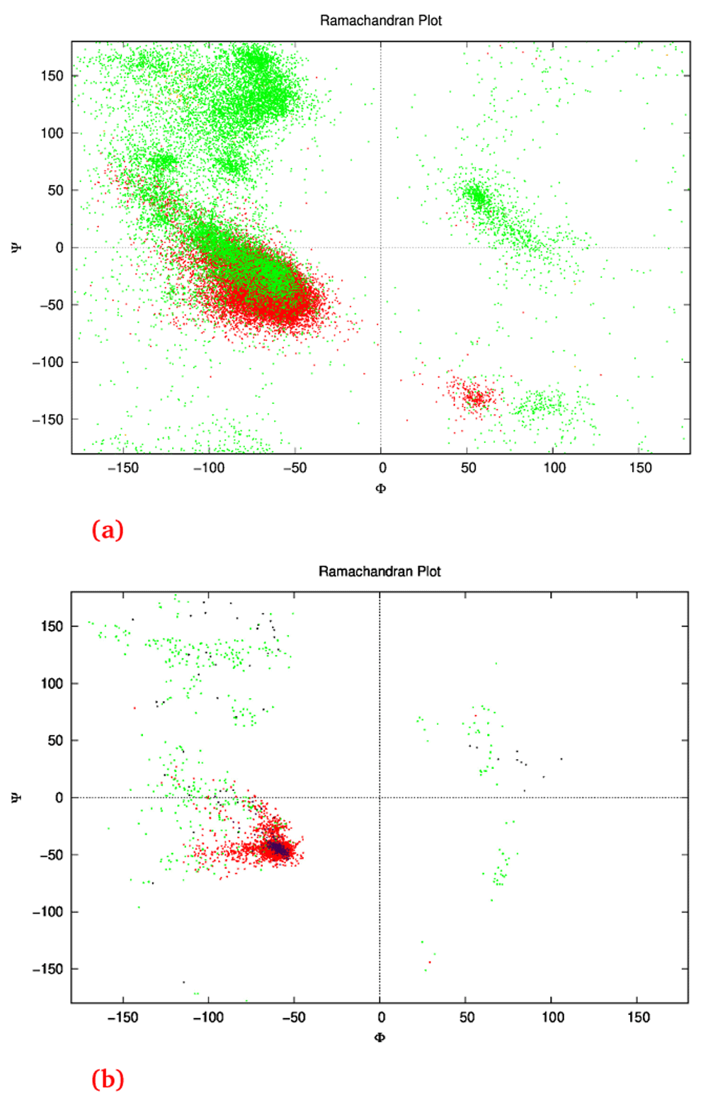 Using only the ϕ and ψ angle values from a crystal structure it was possible to re-fold a structure back to its correct native fold, thus these angles were the only relevant features required to correctly fold a structure, Figure 1A details the range of angles in the un-augmented data. Each amino acid’s ϕ and ψ angle values were extracted and tabulates as in Table 1. This was the dataset used to train the neural network.