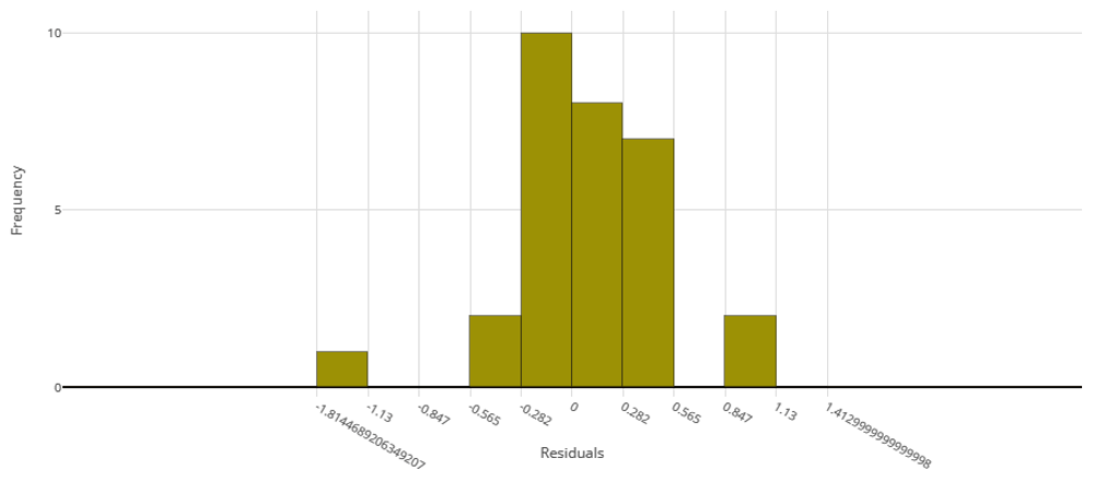 The voting ensemble model (using soft voting) was selected as the best model, having the lowest normalized Root Mean Squared Error (RMSE), as shown in Table 5. The top 10 models trained are reported in Table 6. Having a normalized RMSE of only 0.1228 and a Mean Absolute Percentage Error (MAPE) of 24.27%, this model is expected to accurately predict IC50 in malaria isolates. See Figure 1 for a visualization of the experiment runs and Figure 2 for the distribution of residuals on the best model.